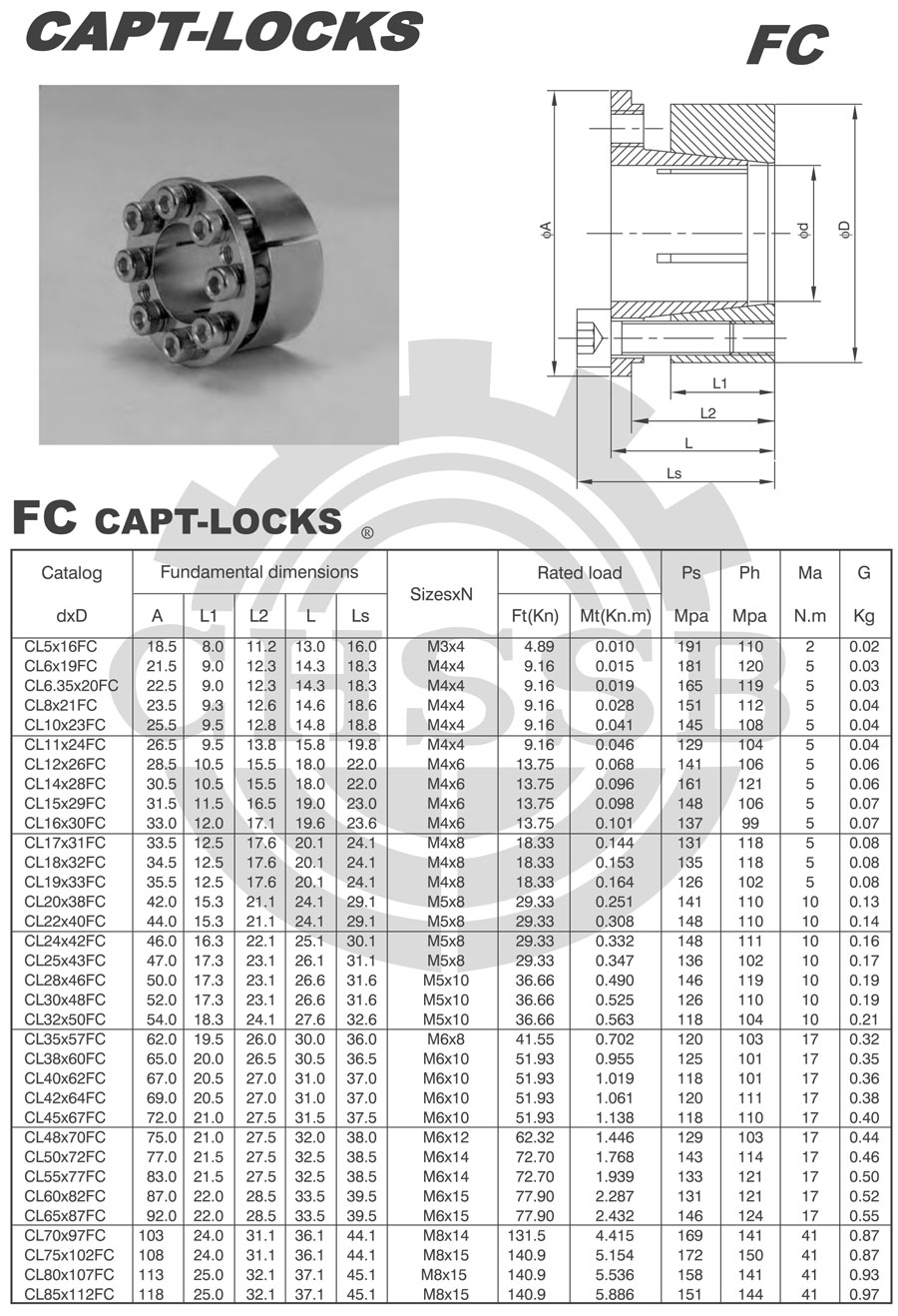不高等特點。FC型脹套是FA2型脹套的輕型系列,其內(nèi)孔、外圓差值小,適合與結構尺寸緊湊部位的聯(lián)結。