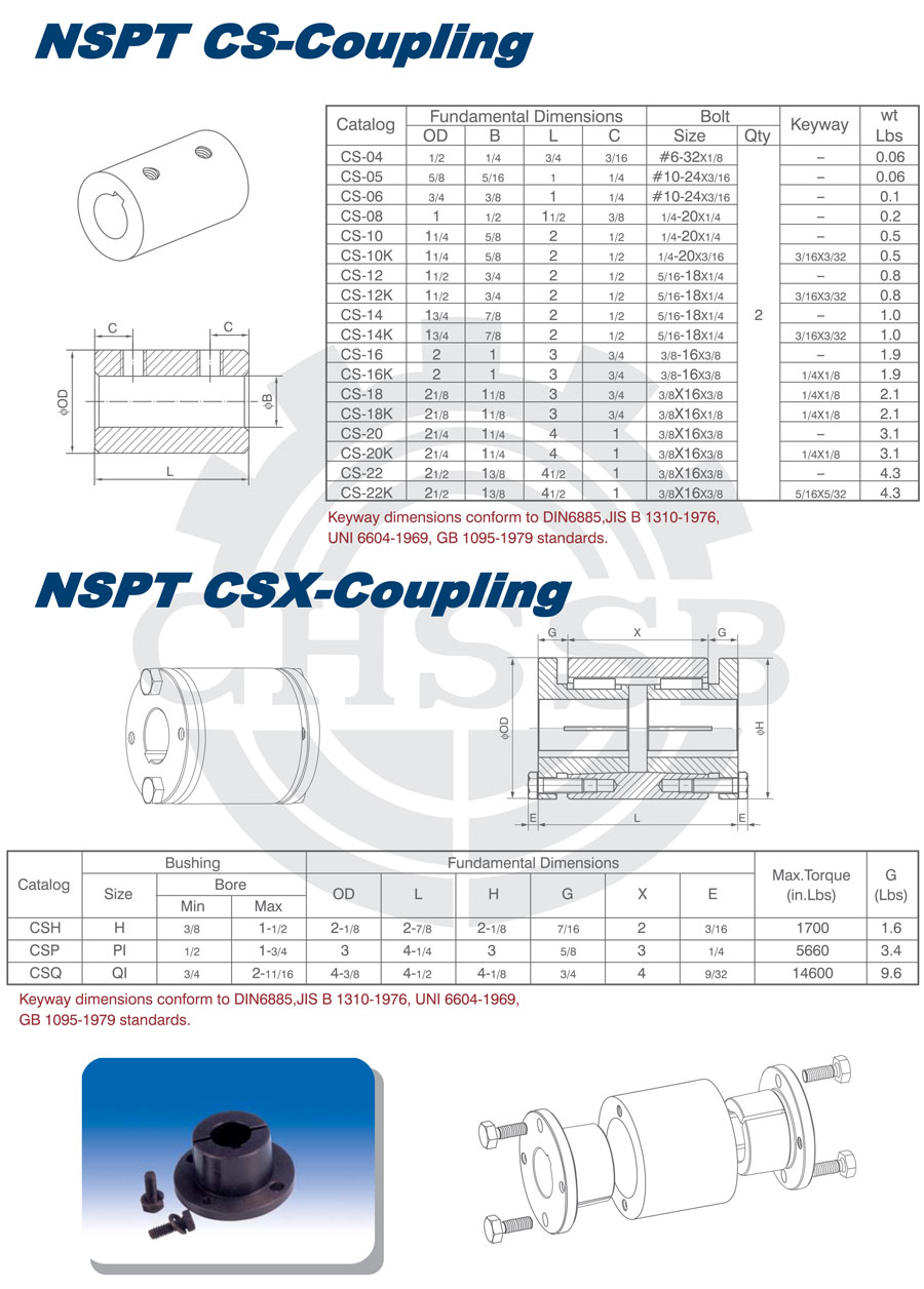 產品范圍: 美標:(CS) 英制尺寸產品(適用于美標市場) CS型聯軸器